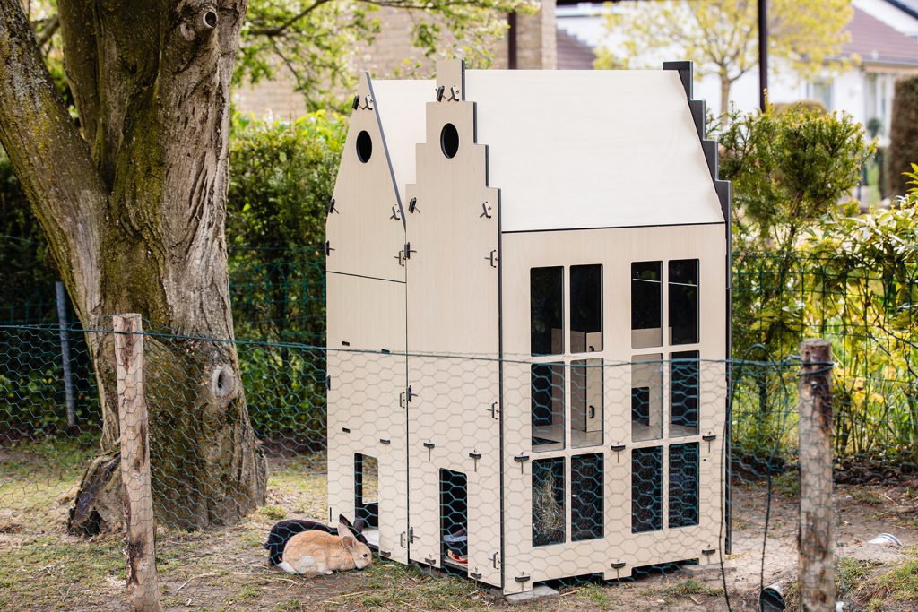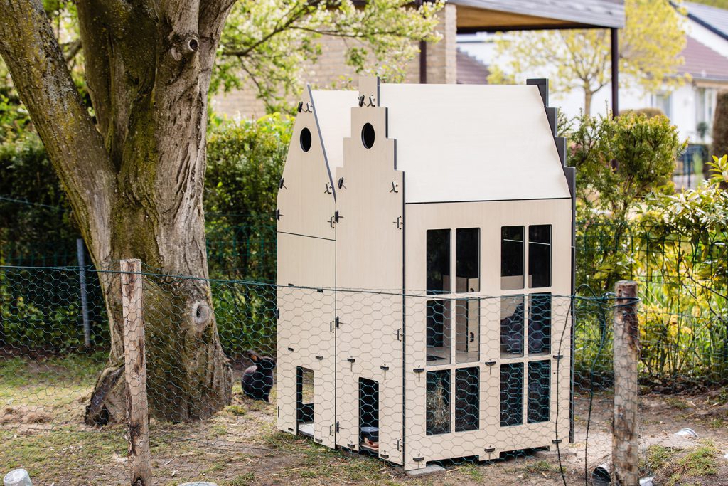De Amsterdamse konijnen villa’s zijn gemaakt van oude volkeren bureaubladen en dekken van kasten en ladeblokken. Het zijn unieke stuks, en omdat we met unieke platen werken kunnen er ook kleur verschillen zijn. andere kleuren als op de foto zijn mogelijk afhankelijk van de voorraad. Heeft u zelf materiaal beschikbaar dan kunnen we ze ook maken op basis van uw eigen grondstoffen. Ze zijn er in 1 uitvoering met trapgeven en tuitgevel. De verbindingen zijn gemaakt van RVS spritpennen deze worden bijgeleverd. Gaas of Plexiglas aan de binnenkant is een extra optie. De Amsterdamse konijnen villa’s worden gedemonteerd geleverd. Misschien is uw De Amsterdamse konijnen villa’s wel gemaakt van het bureau van de secretaris generaal van de navo, de advocaat om de hoek of het voormalige bureau van uw vroegere docent of collega.