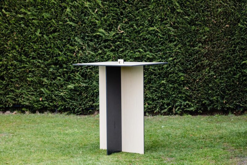 Deze Design Statafels zijn gemaakt van gebruikte bureaubladen en delen van kasten en ladeblokken. Het zijn unieke stuks, doordat we met unieke platen werken kunnen er ook kleurverschillen zijn. De kleuren zijn afhankelijk van de voorraad die er op dat moment voor handen is.. Heeft u zelf materiaal beschikbaar dan kunnen we ze ook maken op basis van uw eigen grondstoffen. Ze zijn er in 2 uitvoeringen met rond en vierkant blad. De verbinding is ook gemaakt van reststukken. De statafel wordt geleverd als een bouwpakket dat makkelijk ge de- en monteert kan worden en dus ook plat weg gezet kan worden. een avondje buiten laten staan in de regen is ook geen probleem ???? Misschien is de repurpose Design Statafel wel gemaakte van het bureau van de secretaire generaal van de navo, de advocaat om de hoek of het voormalige bureau van uw vroeger docent of collega.